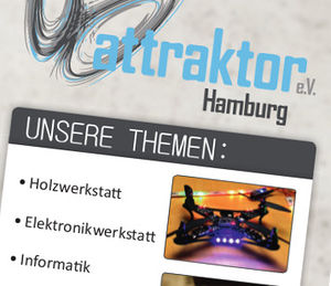 Der Attraktor e.V. ist Veranstaltungszentrum und offene Werkstatt in Hamburg. Hier treffen sich Technikinteressierte, Kreative und alle, die einfach Lust aufs Basteln haben.