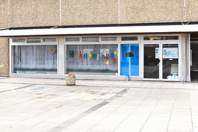 - Über die Brücke am Kindergarten vorbei auf die Rampe gehen und den Häuserblock betreten.