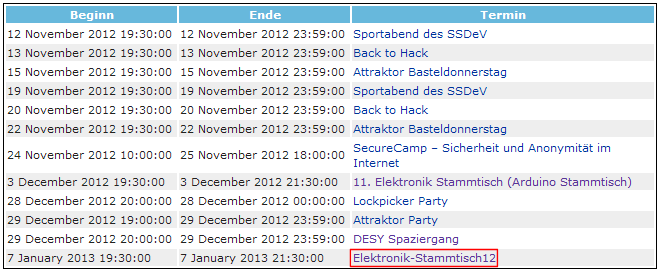 - Das Thema auch zur Liste Elektronik-Stammtisch#Alle Termine hinzufügen.