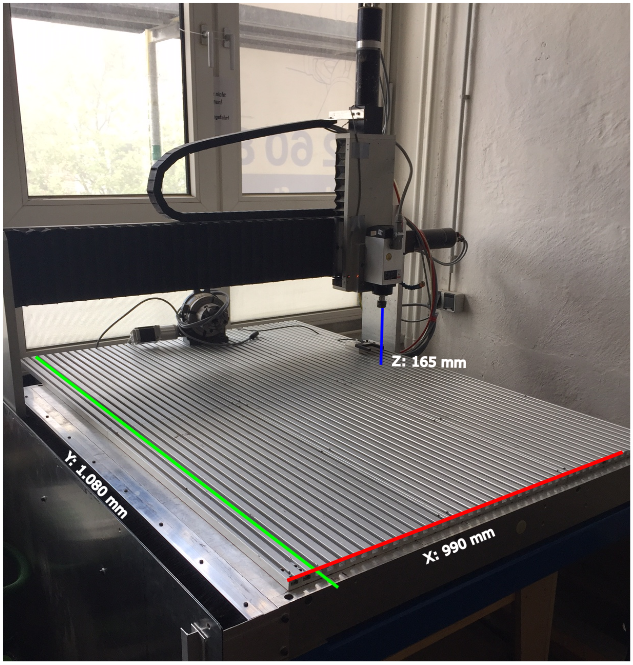 CNC Fräse III Ansicht mit Achsen & Abmessungen