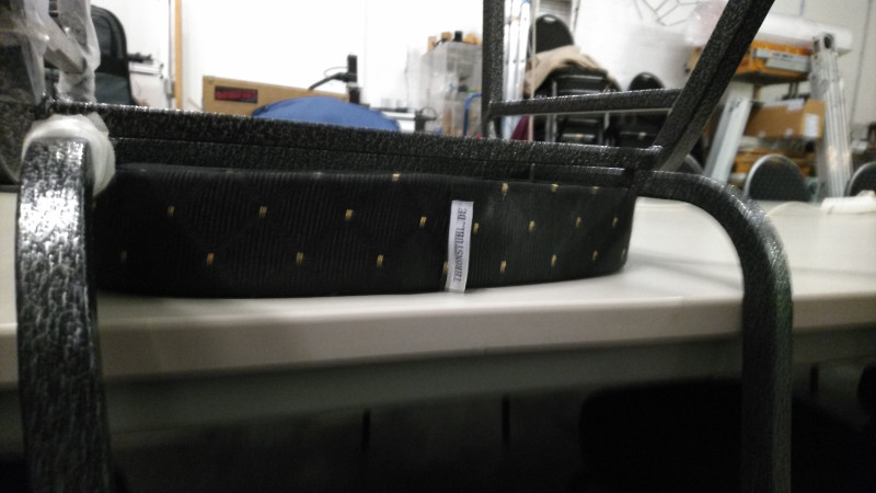 ein zettel der an der Rückseite der neuen Stühle ist.