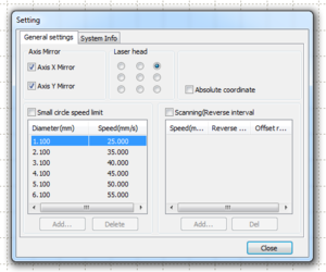 • Ursprung einstellen (Config -> System Setting -> Laser Head)