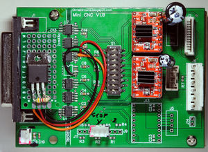 Wie nicht anders zu erwarten, beinhaltet dieser im Wesentlichen Optokoppler zur galvanischen Trennung von Parallelport und Laser-Elektronik und zwei Schrittmotortreiber.