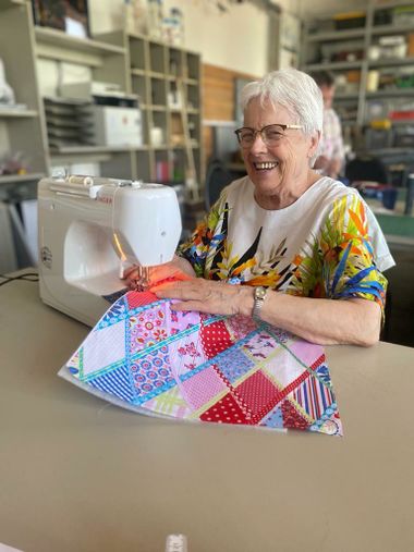 Gisela ist ein Handarbeitsprofi und kann dich mit ihrer langjährigen Erfahrung bei deinen Projekten unterstützen. Gisela hat sich besonders auf das Quilten von Decken spezialisiert und arbeitet donnerstags meist mit ihrer Gammill Langarm-Quiltmaschine. Diese darf nach gründlichen Einweisung auch von dir benutzt werden!