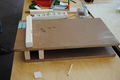 Das Basic-Druckgerät ist bewusst einfach gehalten und auf die wesentlichen Funktionen reduziert. Es kann aus recycelten Hölzern hergestellt werden. Massivholz, Tischlerplatte oder MDF (mitteldichte Faserplatte) sind gut geeignet, Spanplatten eher weniger. Neu bekommt man die Materialien in jedem Baumarkt. All inkl. kostet die Basic-Version max. 30.-Euro (+ Rakel). Zwei Rakel (Gummiwischer) in verschiedenen Größen (22cm und 12cm) pro Druckgerät sind empfehlenswert. (Marke Eigenbau; Griff aus Recycelholz bei der offenen Siebdruckwerkstatt SDW-Neukölln für 1.-Euro/cm)