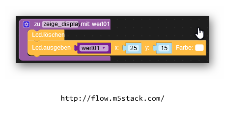Hier habe ich nur eine minimale Ausgabe realisiert, so wie ich sie zum entwickeln des Programms benötigte. In Artikel UIFlow-Eingabe_für_5-Tasten_mit_Makey findet Ihr Anregungen zur Gestaltung der Ausgabe.