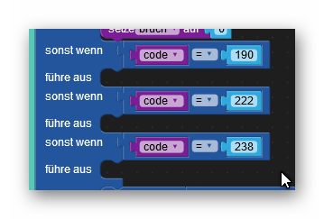 Dann wird mit hole_taste der Tastencode geholt und geprüft, ob eine der Nichtzahlen-Tasten gedrückt wurde.