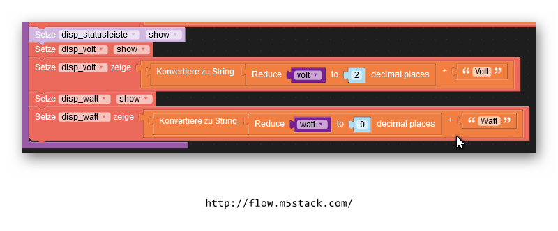 Außerdem werden X-Positionen der drei anzuzeigenden Werte Wert, Volt und Watt festgelegt (werden im Programm nicht verändert).