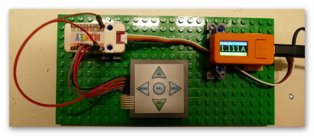 Konkret soll sie mir zur Eingabe von Stromwerten für eine Elektronische-Last dienen. Mit der 5-Tasten-Kombination lässt sich der Strom einstellen und mit der Taste A des M5StickC wird der Strom ein- und ausgeschaltet.