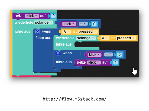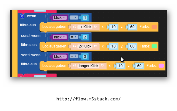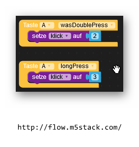 Der M5StickC verfügt nur über 2 Tasten, von denen sich eine auch noch ungünstig an der Seite des Gehäuses befindet. Wenn man das Gerät in ein Gehäuse einbaut ist die Taste B garnicht mehr zu erreichen. Deshalb habe ich nach einer Möglichkeit gesucht mit der Taste A mehrere Funktionen ausführen zu können. Das ist mir gelungen :)