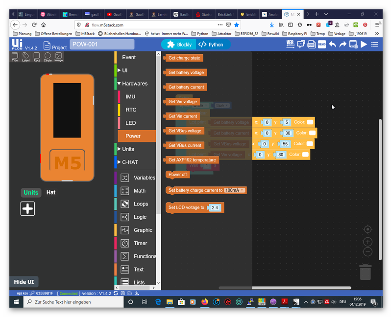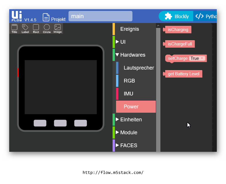 In der UIFlow-IDE sind in Blockly unter Hardware/Power die verschiedenen Möglichkeiten zu finden: