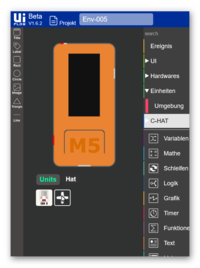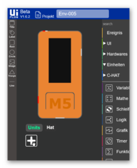 Dann erscheint das Auswahlfenster auf dem man die UNIT/HAT anklickt und dann auf OK klicken und schon erschein das Icon der UNIT/HAT unter dem M5Stck C.