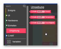 Unter Einheiten/Umgebung erhalten wir die Blöcke für die ENV-UNIT angezeigt. Es sind nur drei, mit denen wir die drei Werte für Temperatur, Luftdruck und Luftfeuchte auslesen können.