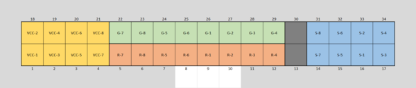 Die Bereiche sind auf den 34-poligen Connector wie folgt geschaltet: